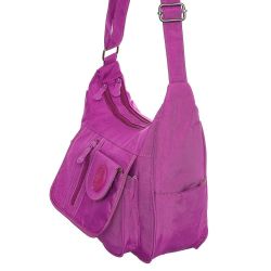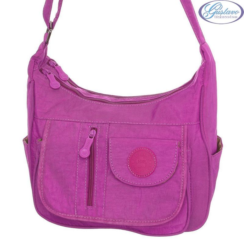 Hernan Bag's Collection lila női táska. 2 cipzáros rekesszel rendelkezik, melyen belül 2 kis zseb és 1 cipzáros kis zseb található. Kívül az elején 2 tépőzáras és 1 cipzáros zseb kapott helyett, az oldalán 1-1 kis zseb, míg a hátulján 1 cipzáros zseb helyezkedik el. Vállpánt hossza állítható.